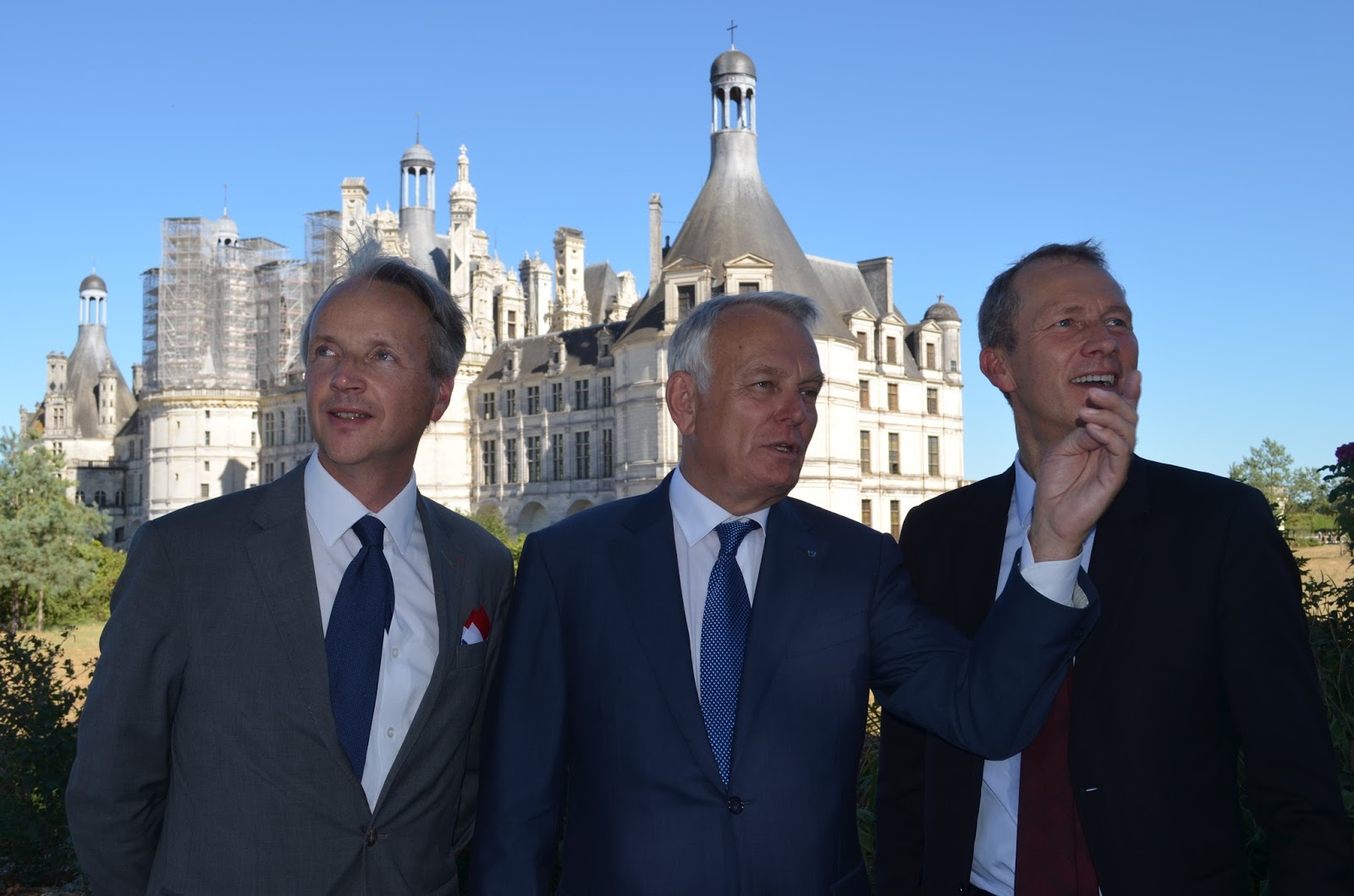 Jean-Marc Ayrault le 23 août au Château de Chambord avec Jean d'Haussonville et Guillaume Garot, respectivement directeur et président du Domaine national. photo © Émilie